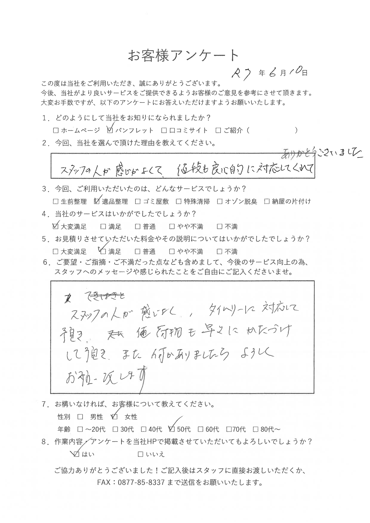 思っていただける遺品整理の本来の姿は、『スタッフの提案力』だと思います。