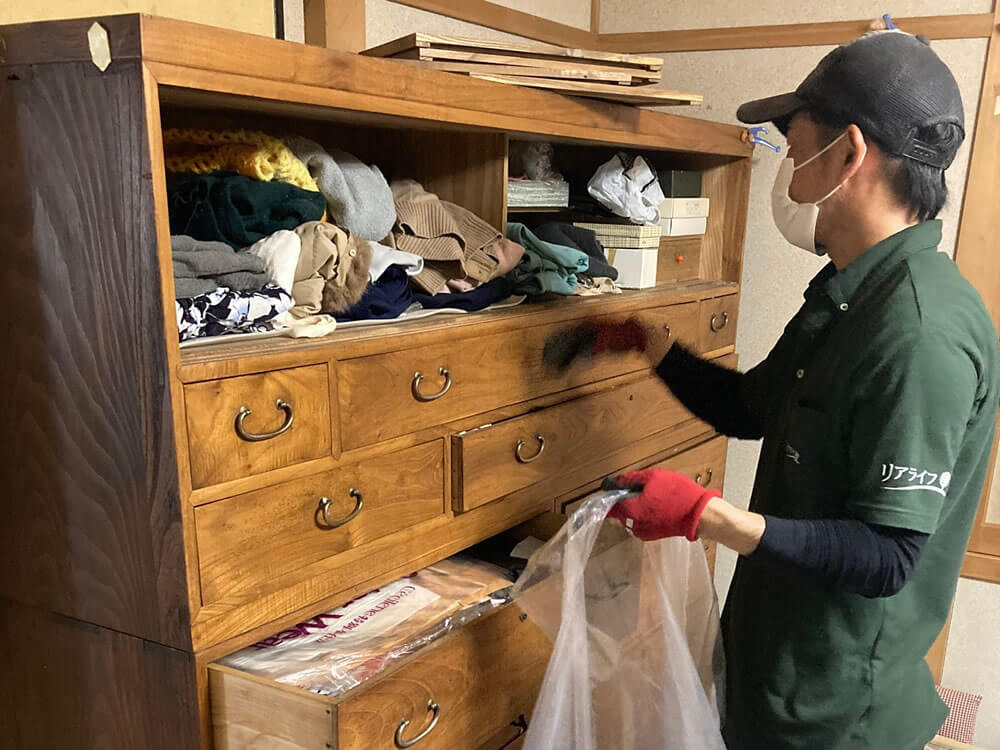 リアライフに寄せられるお悩みは、『アパートなので月末までに退去したい』『孤独死で発見されたので一刻も早く消毒したい』と言った社会的責任により急を要する遺品整理から、『四十九日で形見分けを済ませて、一周忌ごろから片付けていきたい』と言った故人様を偲びながらゆっくりと行う遺品整理まで、ご遺族様の置かれた立場や住宅事情によって様々です。